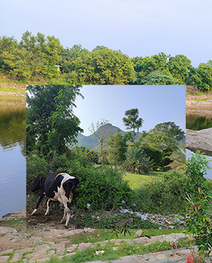 அவர் திருவடிகளில் வீழ்ந்து மன்னிப்புக் கேட்கலாமென்று நிமிர்ந்து பார்த்தால்.. பெரியவரைக் காணோம்! அது மட்டுமா அவர் கூட்டி வந்து காண்பித்த இடத்தின் சமவெளித் தன்மை, பாறை, கற்கள், குகை, அன்னபாலிகா மூலிகை… எல்லாமே மறைந்து, காட்சியே மாறி.. கல், முள், பாறையாகவே காட்சி தந்தது!