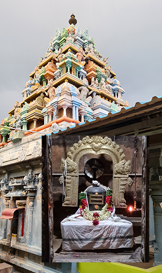 மூலத்தான வாசற்படிக்குச் சற்று உள்ளே இலையை வைத்து “அங்காளித் தாயே, அங்காளி அம்மா, பரம்பொருள் தாயே, ஆதிபராசக்தி தாயே! என்னைப் பெற்றவளே, பிரசாதத்தை ஏற்றுக் கொள் அம்மா!” என்றதோடு, பெரியவர் சொல்லிக் கொடுத்த, “அன்னபூர்ணே சதா பூர்ணே...” – மற்றும் சில மந்திரங்களை ஓதி கை கட்டி, வாய் பொத்தி அமர்ந்தான்.