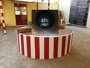 குளிரடைக்கும் பந்தெலன்ன பந்தல், நான்கு குச்சிகளை நிறுத்தி வைத்து ஒரு படுதாவை விரித்து நான்கு புறமும் இழுத்துக் கட்டி இருந்தார்கள், அவ்வளவுதான்! சுற்றிலும் நான்கு புறமும் ஏதோ பழைய துணிமணிகளைக் கட்டி இருந்தார்கள். படுப்பதற்கு இரண்டு காலி எண்ணெய் டின்கள் மேல் ஏற்றப்பட்ட ஓட்டை உடைசல்களுடன் கூடிய பழைய பலகையே பெஞ்சும் ஆயிற்று!