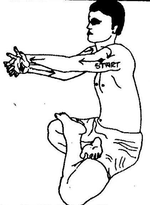 பத்மாசனத்தில் அமர்ந்து உடல் உறுப்புகளை முதலில் நிதானப்படுத்த வேண்டும். தினமும் குறைந்தது பதினைந்து நிமிடங்களேனும் ஸ்ரீகாயத்ரீ தபஸ் (முத்திரைப்) பயிற்சிக்காக ஒதுக்கிடல் வேண்டும். பத்மாசன நிலையில் இரண்டு கைகளையும் முகத்திற்கு எதிரில் ஒன்றாக நீட்டி இடது கையை வலது கை மேல் வைத்து (படத்தில் உள்ளபடி) விரல்களைக் கோர்த்து, கட்டைவிரல்கள் மட்டும் தனித்து நிற்கும்படி “வியூகம்” அமைத்திட வேண்டும். இதுவே ஆலிங்கன வியூகம். ஸ்ரீகாயத்ரீ மந்திரத்தை மனதினில் ஜபித்தவாறே பார்வைதனை இடது கைவிரல்கள், வலது கை, மணிக்கட்டு இடது கைவிரல்கள், வலதுகை விரல்கள், வலது மணிக்கட்டு, முழங்கை வழியே செலுத்தி வலது தோளில் முடித்திட வேண்டும். முகம் நேர்முகமாக இருக்க, பார்வை மட்டுமே கையின் மேல் பரவிட வேண்டும். மீண்டும் வலது தோளில் பார்வையைத் தொடங்கி வலது முழங்கை, மணிக்கட்டு, வலதுகை விரல்கள், இடக்கை விரல்கள், இடது மணிக்கட்டு, முழங்கை வழியே செலுத்தி இடது தோளை அடைந்திட இந்த ஒரு முழு சுழற்சியே ஆலிங்கன தியானமாகும். மானஸீகமான ஸ்ரீகாயத்ரீ மந்திர ஜபத்தை மறந்து நிறுத்திடலாகாது! இதனைக் குறைந்தது பத்து நிமிடங்களேனும் பயில வேண்டும்.