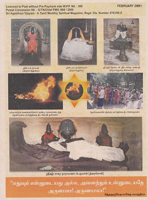 25.2.2001 – தாடி உள்ள ஆட்டைத் தேர்ந்தெடுத்து மஞ்சள், குங்குமம், மாலை இட்டு பூஜித்து உணவு இட்டு வணங்கிடில், மெய்க்காவலர்கள் தமக்கு வரும் ஆபத்தினின்று விடுபடுவர்.