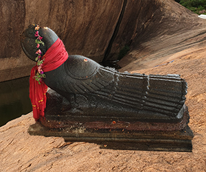 நந்தியின் மேல் சிவ பார்வதி! அனைவருடைய தவ சக்தி, யோக சக்தி, புண்யசக்தியைத் தாங்க வல்ல அதியற்புத புனித பூமியாக இருந்தால்தானே இவ்விடத்தில் ரிஷபாரூடராக இறைவன் காட்சி தரமுடியும்! எனவே இறைவன் ப்ரதோஷ கால பூஜா பலன்களைப் பரிபூரணமாகத் தரவல்ல தலமே த்ரைலோக்கி என்பதால்தான் இவ்விடத்தில் இன்றைக்கும் அனைத்து கோடி தேவ மூர்த்திகளும் ஒன்றாக அமர்ந்து குறித்த தினங்களில் தேவ பூஜைகளை நடத்துகின்றார்கள். பரந்தாமனே இறைவனுடைய ரிஷபாரூடக் காட்சியைப் பெறுகின்ற தலமென்றால் த்ரைலோக்கியின் மகிமையை என்னென்று விரித்துரைக்க முடியும்?