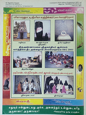 பிப்ரவரி 2004 பௌர்ணமி நாள் : 5.2.2004 வியாழக்கிழமை மதியம் 1.43 மணி முதல் 6.2.2004 வெள்ளிக்கிழமை மதியம் 2.17 மணி வரை திருக்கணிதப் பஞ்சாங்கப்படிப் பௌர்ணமி திதி அமைகிறது. கிரிவல நாள்: 5.2.2004 வியாழக் கிழமை இரவு