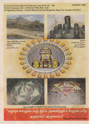 பௌர்ணமி : 9.1.2001 செவ்வாய் விடியற்காலை 5.30 மணி முதல் இதே நாள் நள்ளிரவு 1.54 மணி வரை திருக்கணித பஞ்சாங்கப்படி பௌர்ணமி திதி அமைகிறது. கிரிவல நாள் : 9.1.2001