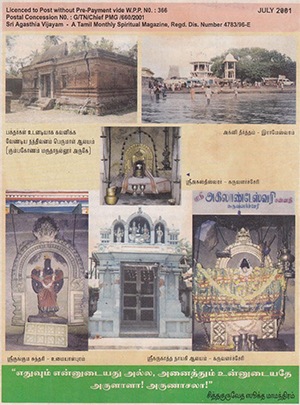 30.7.2001 – கோதண்டராமன், தண்டாயுதபாணி, மழுநாதர் போன்ற பெயர்களை உடையவர்கள் இன்று அன்னதானம் செய்திடில் தாய் மாமன்களால் வரும் துன்பம் விலகும்.