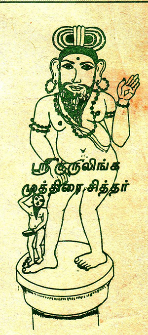 அக்காரிருளிலும் அவ்வுருவத்தைச் சுற்றி தேஜோ மயமான ஒளி வியாபித்தது! சிறுவன் நன்றாக உற்றுப் பார்த்தான். எட்டுக் கோணல்களுடன் (அஷ்டவக்ரம்) அந்த யோகியின் தேக காந்தி பல கோடி சூர்யன்களைப் போல் பிரகாசித்தது. ‘ஏண்டா! நான் சொன்ன ஆளு இவருதான்.. இங்கேயே படுத்துக்கிட்டிருக்காரு.., நீயோ சும்மா சுத்திச் சுத்தி வர்றியே!’ கோவணாண்டிப் பெரியவர் அங்கு திடீரென்று தோன்றி கடகடவென்று சிரித்தார்! ‘இவர் திருவிளையாடல்தான் நமக்குப் பரிச்சயமான ஒன்றாயிற்றே! ஆனால் இவரெங்கு இங்கு வந்தார்!’ சிறுவன் பெரியவரை வியப்புடன் பார்த்தான்! ‘!ஏன் வாத்யாரே !மூணுவாட்டி என்ன அலையவச்சுட்டியே!’