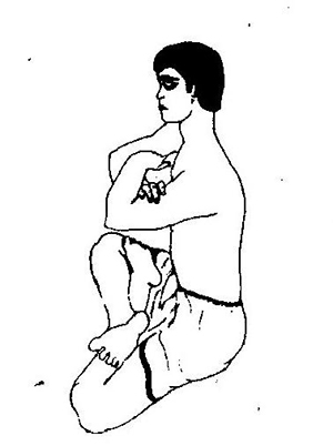 இதனை சருகு அல்லது சருக்கு தியானம் என்றழைப்பர். பத்மாசனத்தில் அமர்வதற்குத் தற்போது அனைவரும் பழகியிருப்பீர்கள். பத்மாசனத்தில் நன்றாக நிமிர்ந்து அமர்ந்து கைகளை மடக்கி ஒன்றினுள் ஒன்றாகக் கோர்த்துக் கொள்ள வேண்டும். இடதுகை, வலதுகை முழங்கைக்கு மேல் உள்புறமாகவும் வலதுகை இடதுகையின் முழங்கைக்கு வெளியிலும் தெரியும் படி (படத்தில் உள்ளபடி) கைகளை மடக்கிக் கண்களுக்கு நேராக, தோள் உயரத்திற்கு நன்றாக உயர்த்திப் பிடிக்க வேண்டும்.