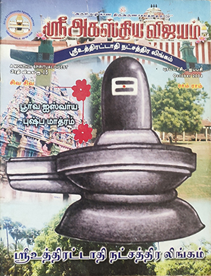 அட்டைப் படத்தில் தரிசிப்பது உத்திரட்டாதி நட்சத்திர லிங்கம். உத்திரட்டாதி நட்சத்திர தேவி தினமும் பூஜிக்கின்ற லிங்கத்தின் உத்தமத் தோற்றம். உத்திரட்டாதி நட்சத்திரத்தில் பிறந்தோர் இதனை அடிக்கடி வரைந்து பழகி தன் மனத்தினுள் நிலை நிறுத்திக் கொண்டு அவ்வப்போதும், உறங்கும் முன்னரும் மானசீக பூஜையைப் பயின்று வருதல் வேண்டும். உத்திரட்டாதி நட்சத்திரத்தார் மட்டுமல்லாது ஏனைய நட்சத்திரத்தவர்களும் இதனை உத்திரட்டாதி நட்சத்திர நாள்தோறும் வழிபட்டு வருதலால் பணக்கஷ்ட நிவர்த்திக்கு உதவும். முறையாகச் செல்வ வளம் சேர உதவிடும். கண்ணாடிச் சட்டத்திற்கு அடியில் கைபடா வண்ணம் வைத்து, வருகின்ற, எடுத்துத் தருகின்ற பணத்தை இதன் மேல் வைத்து “ஓம் பூர்வ உத்ராதன ஆகர்ஷண சாதனாமிர்தம் சரணம்” என்று ஓதிப் பெறுதல், அளித்தலால் பணத்தில் தொற்றி வரும் நஷ்ட தோஷங்கள் தணியும், தனவிருத்தி ஆகர்ஷண சக்திகள் மலரும். அட்ட தரித்திரங்களும் நீங்கிட உத்திரட்டாதி நட்சத்திர நாளில் அறந்தாங்கி ஆவுடையார் கோயில் அருகே உள்ள தீயத்தூர் ஸ்ரீசகஸ்ர லக்ஷ்மீஸ்வரர் ஆலயத்தில் தாமரை மலர்களை காப்பு கட்டி அபிஷேகித்து முழுத் தாமரைப் பூக்களை நல்ல மலைத் தேனில் தோய்த்து அபிஷேகித்து ஆராதனைகள் செய்து வர வேண்டும்.