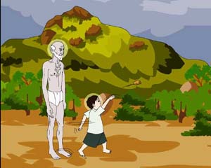 பெரியவரைத் தேடியபடியே சிறுவன் கிரிவலப் பாதையில் ஓடினான். ரொம்ப நேரம் ஓடிய பின்னர், தூரத்தில் பெரியவர் நடந்து போய்க் கொண்டிருப்பது அவன் கண்களில் தென்பட்டது. அவரைப் பார்த்த சந்தோஷத்தில் சிறுவனின் ஓட்டம் இன்னும் சூடு பிடித்தது.