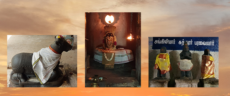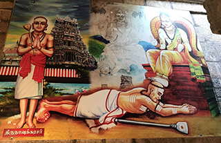 நம் சற்குரு அளிக்கும் அனைத்து வழிபாடுகளின் பின்னணியிலும் ஆயிரக் கணக்கான தெய்வீக விளக்கங்கள் பொதிந்துள்ளன. அவற்றை அடியார்கள் ஆத்மவிசாரம் செய்து அறிந்து கொள்தலே சிறப்பு என்றாலும் ஒரு சில ஆன்மீக இரகசியங்களை தெரிந்து கொள்வது தவறு கிடையாது அல்லவா ? இவ்வாறு மண்டியிட்டு பிரார்த்திப்பதின் பின்னணியாக அமைந்துள்ளதே கோவண இரகசியமாகும். கோவண மகிமையைப் பற்றி ஸ்ரீஅகத்தியரின் சீடரான ஸ்ரீபோகர் மகரிஷி மூன்று ஆயிரம் லட்சம் பாடல்களை பாடியுள்ளார் என்றால் கோவண மகிமையை எப்படி சுருக்கமாகக் கூற முடியும். ஆனால், ஸ்ரீரங்கம் தலத்துடன் தொடர்புடைய கோவண இரகசியங்களே திருநல்லூர் திருத்தலத்தில் பொலிகின்றன. திருநல்லூரில் அப்பர் பெருமான் இரவு தங்கியிருந்தபோது அருகில் ஒரு வயதான அடியார் தன் பாதங்களை அப்பர் தலை மேல் வைத்தார். பெருமான் இது கண்டு தன் உறக்க இடத்தை வேறோர் இடத்திற்கு மாற்றிச் சென்றபோதும் அங்கும் அதே முதியவர் வந்து தன் பாதங்களை அப்பர் பெருமான் தலை மீது வைக்கவே அதனால் வெகுண்ட பெருமான் இவ்வாறு தன் தலையை அந்தப் பெரியவர் “உதைத்த” காரணத்தைக் கேட்டபோது அந்த பெரியவர் சிரித்துக் கொண்டே மறைந்து விட்டாராம். அப்போதுதான் தன் தலையைத் தன் திருப்பாதங்களால் தீண்டியவர் சாட்சாத் சிவபெருமான் என்று அறிந்து கொண்டாராம் அப்பர் பெருமான். ஆமாம், இதற்கும் கோவண மகிமைக்கும் என்ன சம்பந்தம் என்று உங்களுக்குக் கேட்கத் தோன்றுகிறது அல்லவா ? சிவபெருமான் கோவணம் கட்டிய எளிய முதியவர் வடிவில் வந்தார் என்பதே சித்தர்கள் கூறும் சுவை. அது மட்டுமல்ல இத்தலத்தில் இறை அருளுக்குப் பாத்திரமான அமர்நீதி நாயனாரை இறைவன் சோதித்ததும் கோவண ஆடையைக் கொண்டுதானே ? திருநல்லூர் திருத்தலத்தில் ஆறு நாழிகைக்கு ஒரு முறை என சுமார் இரண்டரை மணி நேரத்திற்கு ஒரு முறை இறைவன் தன் சுய திருமேனியின் வண்ணத்தை மாற்றிக் கொள்கிறான் என்பது அனைவரும் அறிந்த இரகசியமே. இவ்வாறு ஐந்து வண்ணங்களுடன் திகழும் இறைவனைத் தரிசிப்பதே பஞ்ச பூதங்களின் சக்தியை எளிமையாக மக்கள் பெறும் வழிபாட்டு முறை என்று உணர்ந்து கொள்வதே பஞ்சபூதங்களின் வழிபாட்டுத் தலமான ஸ்ரீரங்கத்திற்கும் பஞ்சபூதங்களின் அனுகிரகத் தலமான திருநல்லூருக்கும் இடையே உள்ள பக்தர்கள் அறிந்து கொள்ளக் கூடிய ஆன்மீகத் தொடர்பு ஆகும். இவ்வாறு தன் திருமேனியில் பொலியும் அமிர்த சக்திகளை தரிசன அனுகிரகமாக அளிப்பவர் திருநல்லூர் ஸ்ரீஅமிர்தலிங்கப் பெருமான் மட்டும் அல்ல நன்னிமங்கலம் ஸ்ரீசுந்தரேசப் பெருமானும் ஆவர் என்பதே இந்த இரு மூர்த்திகளும் பகிர்ந்து கொள்ளும் பங்குனி தெய்வீகச் சுவை ஆகும். இவ்வாறு ஒன்றுக்கொன்று மேலாக பரிணமித்