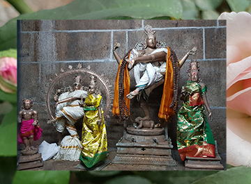 என்று உறுதி செய்தார் அல்லவா ? அந்த அற்புத தேவார வரிகளுக்கு சான்றாய் அமைந்ததே இந்த இறை அடியார்களின் சந்திப்பாகும். இதை உறுதி செய்வதாகவே எம்பெருமானும் நந்தியை விலகச் செய்து அந்த உத்தம அடியார்களுக்கு திருக்காட்சி நல்கியதை இன்றும் நாம் தரிசிக்கலாம். சத்ரு சம்ஹார மூர்த்தி தம்பதிகளின் இயற்பெயரோ கனகசபாபதி சொர்ணம் என்பதாகும். இந்தத் தங்கத் தம்பதிகளை இந்தத் தங்க ஆண்டில் நினைவு கூர்வது பொருத்தம்தானே. சம்ஹாரம் என்றாலே சண்முகனுக்கு உரியதுதானே. அதனால் சத்ரு சம்ஹார மூர்த்தி முருகப் பெருமானின் திருஉருவப் படத்தை வைத்து நீதிமன்ற வளாகத்தில் வைத்து வழிபடுவார். “அன்னவன் இயற்றும் பூசையில் அவரவர் வழிபடும் தெய்வமே அவரவராய் நின்றதுவே,” என்று சம்ஹார மூர்த்தியின் வழிபாட்டைச் சிறப்பிக்கிறது அகத்திய கிரந்தம். அதாவது சம்ஹார மூர்த்தி பழநி முருகப் பெருமானின் திருவுருவத்தை வைத்து வழிபட்டாலும் பார்ப்பவர்களுக்கெல்லாம் அவரவர் இஷ்ட தெய்வமான சமயபுரம் மாரியம்மன், மதுரை வீரன், ஸ்ரீரங்கம் ரெங்கநாதர் என்றே தோன்றுவதுண்டு. இதற்காகவே சுவாமி இயற்றும் வழிபாட்டில் பங்கு கொண்டோர் ஏராளம். இதுவே பரணி தரணி ஆளும் இரகசியம்.