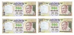 Step 1. Arrange the one-hundred Rupee notes into four bunches of one