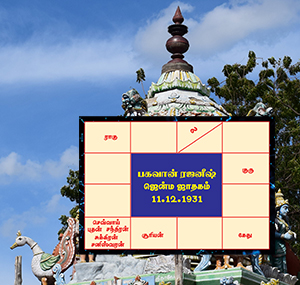 மூன்றின் குசாவாகத் திகழ்வது ஆறு என்பது நீங்கள் அறிந்ததே. இவ்வாறு ஆறு கிரகங்கள் அதாவது சூரியன், சந்திரன், புதன், குரு, சனி, கேது என்ற ஆறு கிரகங்களும் தனுசு ராசியில் ஒன்றாக இணையும் கிரகங்களின் சங்கமம் வரும் மார்கழி மாதம் ஒன்பதாம் நாள் (25.12.2019) புதன் கிழமை அன்று நிகழவிருப்பதால் இறையன்பர்கள் இந்த சங்கம கோலத்தை நல்ல முறையில் பூஜித்து பயன்படுத்தும்படிக் கேட்டுக் கொள்ளப்படுகிறார்கள். இந்த விகாரி வருட பலாபலன்களைப் போன்றே இவ்வருடம் தோன்றும் இந்த சங்கமக் கோலமும் மாறுபட்ட பலன்களை அளிக்கக் கூடியதே. இவ்வருட ஆரம்பத்தில் சித்தர்கள் சுட்டிக் காட்டியபடி செவ்வாய் பகவானின் ஆதிக்கத்தால் பல இடங்களில் தீ விபத்துக்கள் உலகளாவிய நிலையில் ஆயிரக் கணக்கான லட்சக் கணக்கான மக்களுக்கும் பொருட்களுக்கும் சேதத்தை விளைவித்தாலும் குருவை கடவுளை நம்பியோர்கள், வழிபாடுகளை இயற்றியவர்கள் இத்தகைய ஆபத்துக்களிலிருந்து மீண்டு வந்துள்ளார்கள் என்பது அவரவர் அனுபவத்தால் அறிந்திருக்கக் கூடும். அதே போல் செவ்வாய் பகவான் அளிக்கும் உஷ்ண வியாதிகளிலிருந்து மீண்டு ஆரோக்யம் பெற்ற அடியார்களின் வரலாறும் பல நீங்கள் அறிந்திருக்கலாம். இவ்வாறு மூல நட்சத்திர ஆதிக்கத்தில் அமையும் இந்த சங்கமக் கோலமும் கடவுளை நம்பியோருக்கு அற்புதமான பலன்களை வர்ஷிக்கும் என்பதில் சிறிதும் ஐயமில்லை. சற்குரு அருளியதுபோல் இந்த சங்கமக் கோலத்தின் மகிமையை விளக்க மூன்று யுகங்கள் கூட போதாது என்றாலும் கலியுக வாசிகளுக்கு பயன்படும் சில கருத்துக்களை மட்டும் இங்கு அளிக்கிறோம். பஞ்ச பூதங்களும் ஒரு யுகத்தில் ஸ்ரீரங்கநாதரை வழிபட்டு நற்கதி அடைந்தன என்பது நீங்கள் அறிந்ததே. அது போல் இந்த சங்கமக் கோலமும் பெருமாளுக்கு உரிய புதன் கிழமை அன்று நிகழ இருப்பதால் ஸ்ரீரங்கம் திருத்தலத்தில் 25.12.2019 அன்று மாலை சுமார் 5 மணிக்கு நிகழ இருக்கும் கிரக சங்கமக் கோலம் பற்றிய வரைபடைத்தையே இங்கு பக்தர்களின் வழிபாட்டிற்காக அளிக்கிறோம். அடியார்கள் தாங்கள் வசிக்கும் இடங்களிலோ அதாவது மற்ற மாநிலங்களிலோ அயல்நாடுகளிலோ வசிப்பவர்கள் தாங்கள் இருக்கும் இடத்திற்கு உரித்தான கிரக சங்கமங்களின் படத்தை வரைந்து வழிபடுவதும் ஏற்புடையதே. மேஷ ராசியிலிருந்து ஒன்பதாவது ராசியான தனுசு ராசியில் இந்த கிரக சங்கமம் நிகழ்வதால் ஐந்திற்கு ஒன்பது என்ற கணக்கில் தனுசு ராசியில் ஐந்து கிரக சங்கமத்தில் தோன்றிய பகவான் ரஜனீஷ் அவர்களின் ஜன்ம ஜாதகத்தை வைத்து வழிபடுவதும் ஏற்புடையதே.