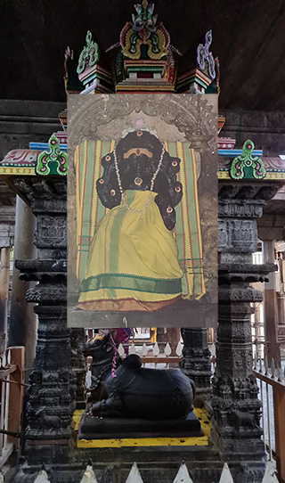 இங்கு சுந்தரர் பெருமானுக்கு முன்னே சேரமான் குதிரையில் பயணம் செல்வதைக் காண்கிறோம். குதிரைக்கு முன்னே கழுதை வந்ததாக ஸ்பின் (சுழற்சி) தத்துவம் விளக்குகிறது என்பதைப் புலப்படுத்தியவரே நம் சற்குரு. இவ்வாறு எதற்கு முன் எது வந்தது என்ற அறிவை விருத்தி செய்யக் கூடியதும், அறிவின் பேரருள் களஞ்சியமே ஸ்ரீநெல்லையப்பர் ஆலயம் ஆகும். இங்குள்ள சுதையாலான நந்தி மூர்த்தியைச் சுற்றி 21 பெரிய அகல் தீபங்களை ஏற்றி சுற்றி வந்து வணங்குவதால் இந்த அறிவைப் பெறலாம். இதனால் என்ன பயன் என்று உங்களுக்குக் கேட்கத் தோன்றும். அறிவிற்கும் வியாதிகளுக்கும் மூல காரணம் பெற்றோர்களே என்ற கருத்து நிலவி வருகிறது. இது ஓரளவிற்கு காரணம் என்று கூறினாலும் கர்ம வினை என்ற ஒன்றே அனைத்திற்கும் மூல காரணம் என்று தெரிவிப்பவர்களே சித்தர்கள். அறிவு ஜீவியான பெற்றோர்களுக்கு ஞானசூன்யமான குழந்தைகள் பிறப்பதற்கும், அறிவு குறைந்த பெற்றோர்களுக்கு புத்தி பிரகாசமான சந்ததிகள் விருத்தியாவதற்கும் இந்த சுழற்சி தத்துவமே ஓரளவிற்கு விடையளிக்கும். இவ்வாறு அகல் தீபங்களை இத்திருத்தலத்தில் ஏற்ற முடியாவிட்டாலும் இங்குள்ள சுதை நந்தி மூர்த்தியை வெறும் மண் அகல்களுடன் குறைந்தது 21 முறை வலம் வந்து பின்னர் அந்த அகல் தீபங்களில் தேங்காய் எண்ணெய், நல்லெண்ணெய், விளக்கெண்ணெய் என்ற முக்கூட்டு எண்ணெயால் தீபம் ஏற்றி தங்கள் இல்லங்களில் அனைத்து வாயிற்படிகளிலும் வைத்து வழிபடுவது கார்த்திகை தீப தினத்தில் மட்டும் அல்லாது இந்த கார்த்திகை மாதம் முழுவதும் இயற்றக் கூடிய அற்புத தீப வழிபாடாகும். இதனால் பெற்றோர்கள் எந்நிலையில் இருந்தாலும் அவர்கள் சந்ததிகள் வளமுடன், செம்மையாக வாழ இந்த முக்கூட்டு தீப வழிபாடு நல்லருள் புரியும். பரம்பரையாகத் தொடரும் ஆஸ்துமா, சர்க்கரை போன்ற நோய்களின் வேகம் குறையும். நான்காகக் கீறிய முழுக் கத்தரிக்காயில் தேங்காய் துருவல் போன்றவற்றைச் சேர்த்து வறுத்து அதைத் தயிர் சாதத்துடன் தானமாக அளித்தல் இவ்வருடம் முழுவதும் சிறப்பாக எத்தலத்திலும் இயற்றக் கூடிய அன்னதானமாகவும் ஸ்ரீநெல்லையப்பர் ஆலயத்தில் நிகழ்த்தக் கூடிய சிறப்பு தான வழிபாடாகவும் அமையும். இதுவே அன்னதானம் மூலமாகவும் நிறைவேற்றக் கூடிய “ராகவேந்திர ஸ்வஸ்தி துதி” வழிபாடாகும். இந்த கத்தரிக்காய் தானத்தைக் குறித்து ஆத்மவிசாரம் செய்து வந்தால் அடுத்த கார்த்திகை தீபம் வரை தெய்வீகத் தத்துவங்கள் பொங்கிப் பிரகாசிக்கும் இந்த தானத்தின் மகிமையும், அதைத் தொடரும் ஆத்ம விசாரத்தின் சாரமும் ஆகும். சுதையின் இறுக்கம், உறவின் நெருக்கம் !!