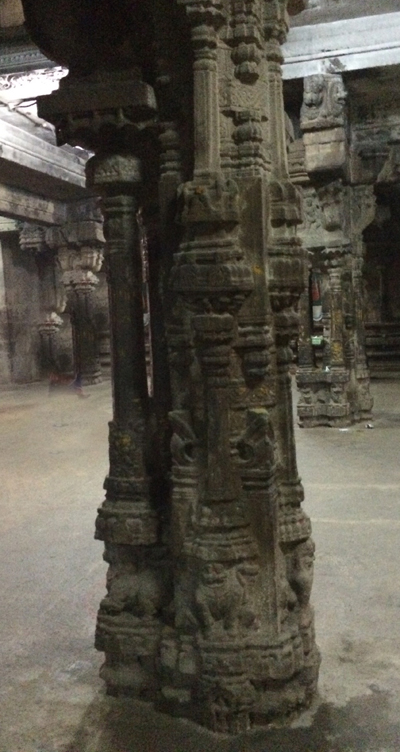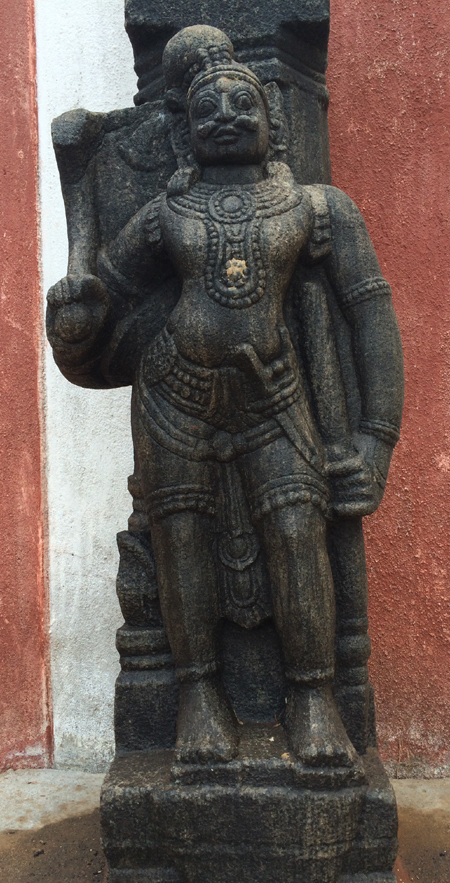 த்விபுஜங்க தூண்கள், நாச்சியார் கோவில் திருச்சி. நற்காரியங்கள் சமூக காரியங்கள் செய்வர்களும் பற்பல இன்னங்களைச் சந்திக்க வேண்டி வருகிறதல்லவா ? சமூக சேவையில் ஈடுபட்டவர்கள், மனித குல மேம்பாட்டிற்காக பாடுபடுபவர்கள், பிறர் நலம் விரும்பிகள் தங்கள் சேவையில் பழி ஏதும் ஏற்படாமல் தங்களைக் காததுக் கொள்ள விரும்பினால் அவர்கள் இங்குள்ள ஆஞ்சநேய மூர்த்தியை வணங்கி கை முறுக்கு தானமாக வழங்கி வருதல் நலம்.