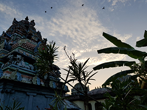சரியாக ஏழு மணிக்கு சுவாமிகள் நாம சங்கீர்த்தனத்தை ஆரம்பித்தனர். சுவாமிகளுடன் சேர்ந்து அனைவரும் இறைப் பாடல்களை ஓதினர். அவர்கள் அனைவரும் வீட்டின் நடு ஹாலில் பாடல்களை இசைத்துக் கொண்டிருந்தனர். அங்கு இரண்டு டியூப் லைட்டுகளும் ஒரு குண்டு பல்பும், ஐந்து முகங்களுடன் ஐந்து தீபங்கள் கொண்ட குத்து விளக்கும் எரிந்து கொண்டிருந்தது. கொஞ்சம் கொஞ்சமாக நேரம் எட்டு மணியை நெருங்கியது.