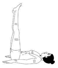 கால்களை நேராக நீட்டி மல்லாந்து படுத்துக் கொள்ளவும். கைகளைப் பக்கவாட்டில் வைத்துக் கொள்ளவும். இரண்டு கால்களையும் தரையிலிருந்து 90 டிகிரி அளவு முட்டி மடங்காமல் தூக்கவும். இரண்டு கால் கட்டை விரல்களைப் பார்க்கவும். மூன்று விநாடிகள் மூச்சுக் காற்றை இழுத்து நிலை நிறுத்தவும். மூச்சுக் காற்றை வெளியே விட்டு கால்களை தரையில் இறக்கவும்.